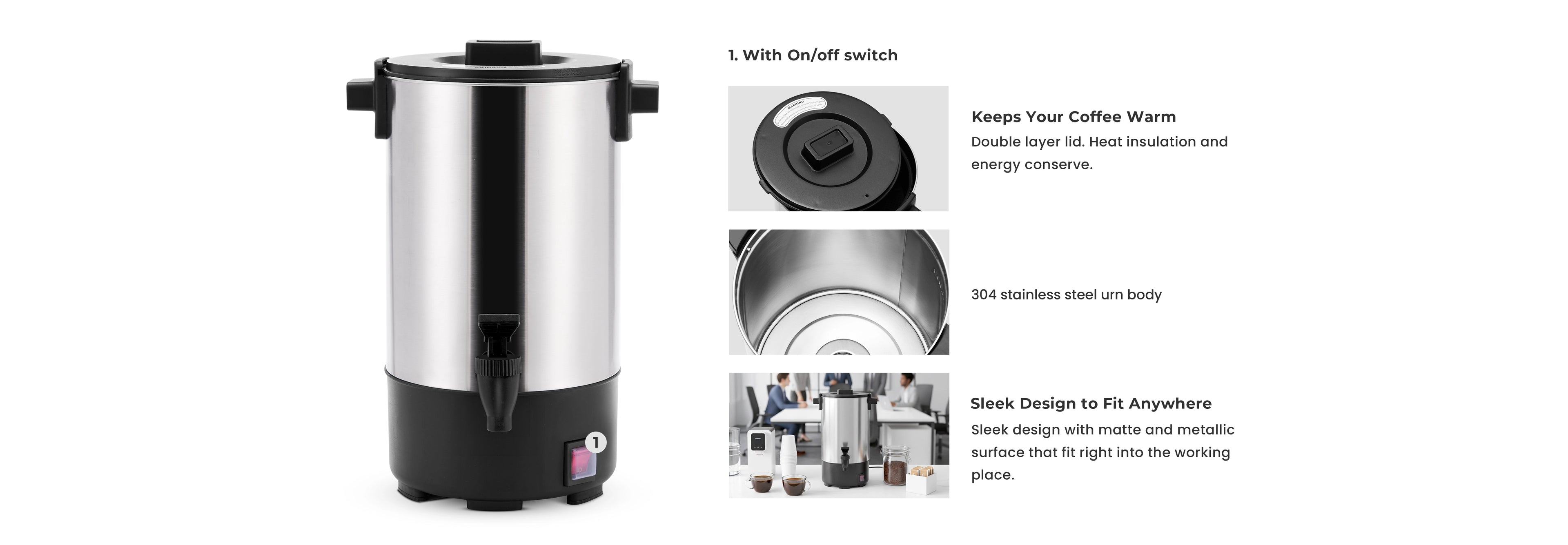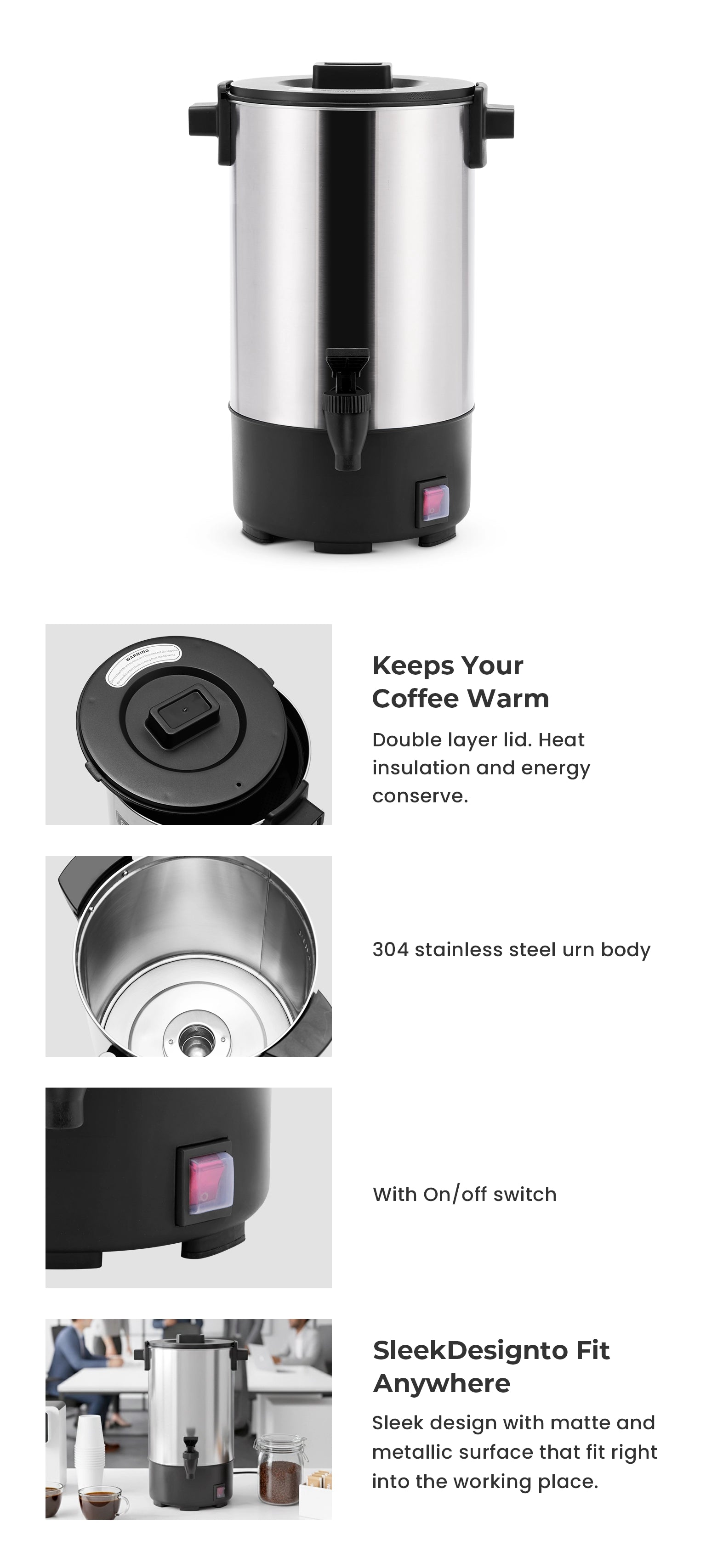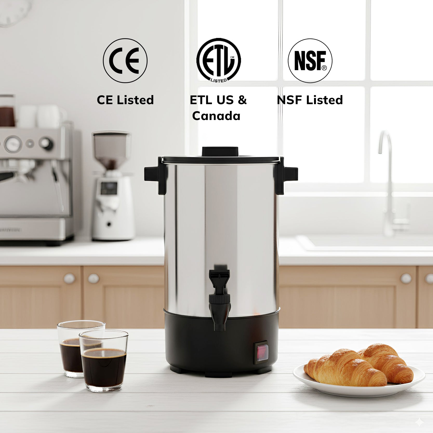 Perfect for smaller gatherings, offices, or casual events, the 30/40 Cup Coffee Urn offers fast, reliable coffee service in a more compact design. Ideal for meetings, brunches, or family get-togethers, it brews fresh coffee quickly and keeps it hot and ready to serve.