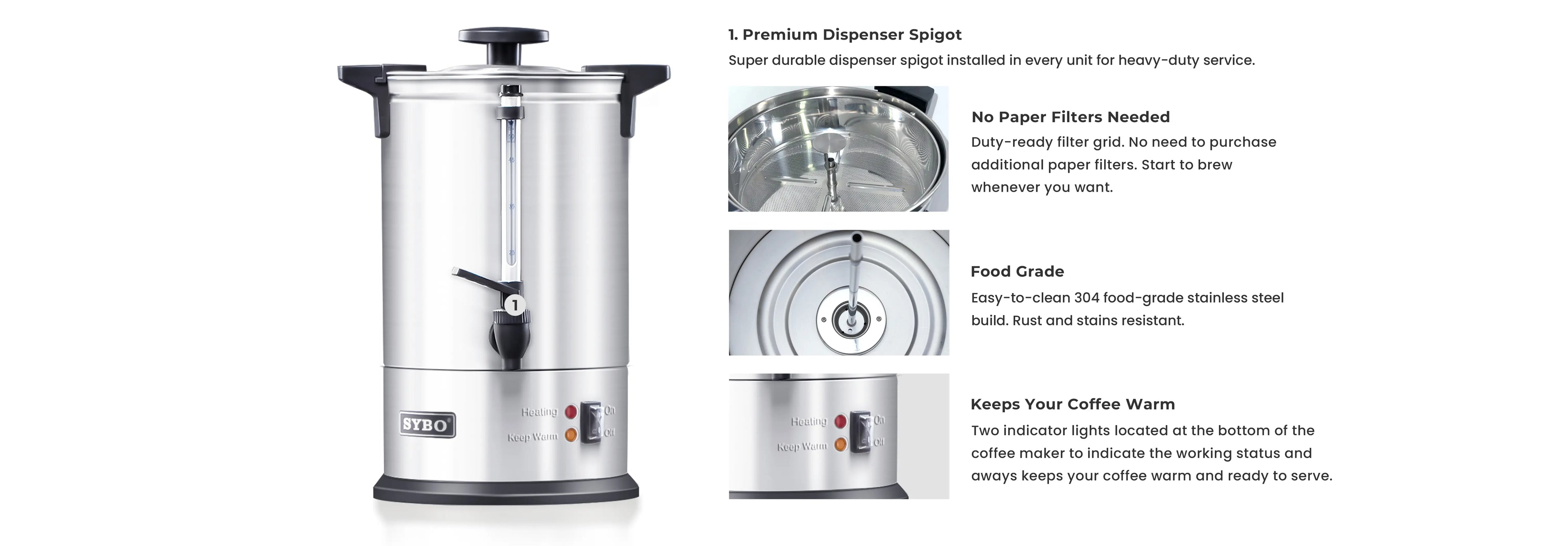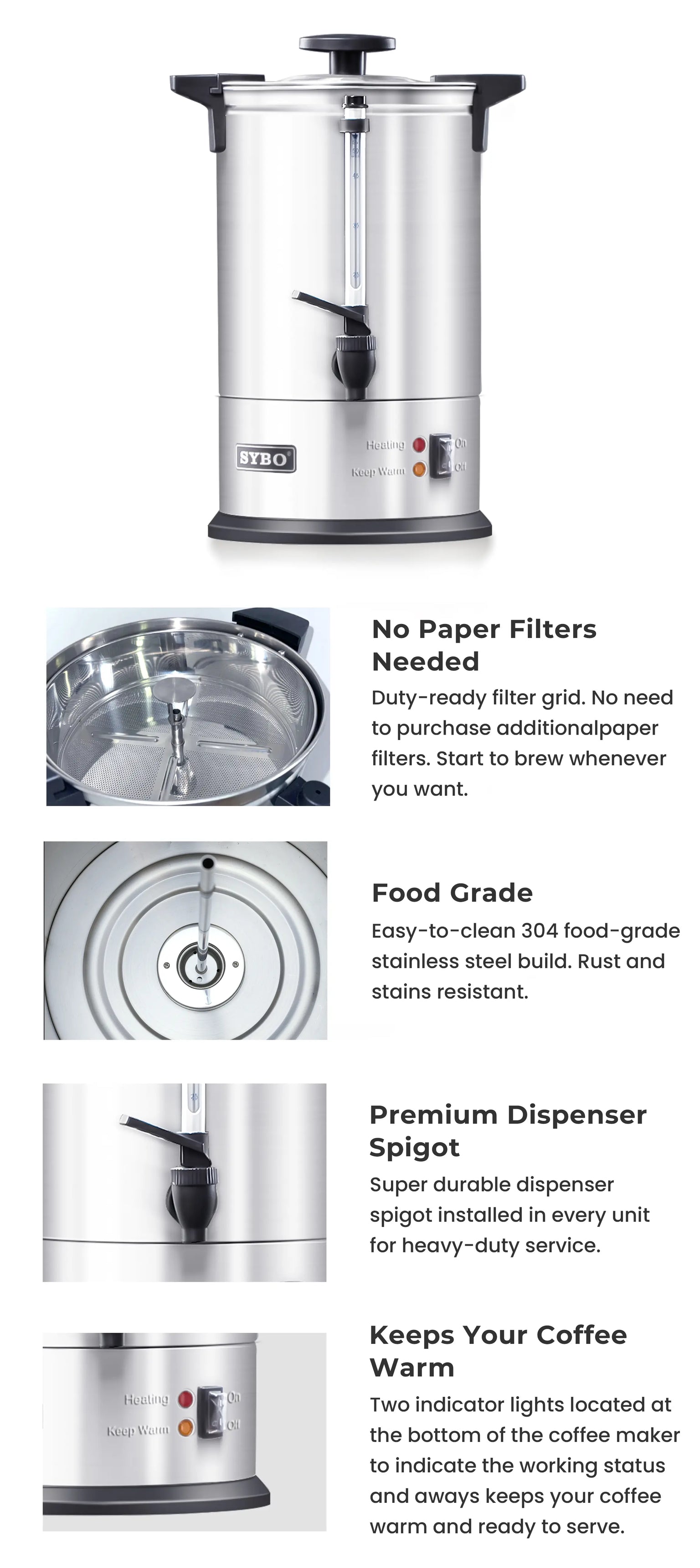 SYBO Stainless Steel Percolator Coffee Urn 50/100/120 Cup